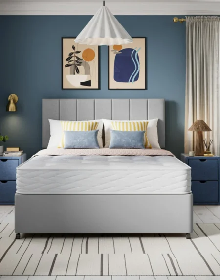 Features of Small Double Divan Bed with Mattress High-quality mattress included for optimal support and comfort, suitable for two people. Sturdy construction ensures long-lasting use and stability. Fits well with various interior styles, from modern to classic. The mattress and bed frame are designed for airflow to keep you