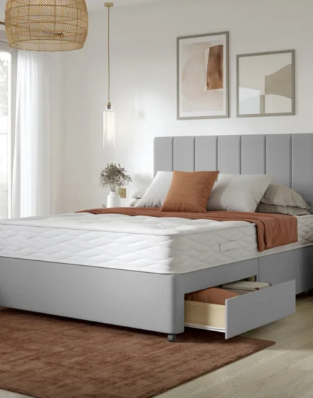 Features of King-Size Divan Bed with Mattress Comes with a high-quality, supportive mattress for superior comfort. The divan base provides built-in storage options like drawers, maximizing space efficiency. Sturdy and durable construction ensures long-lasting use. Easy to assemble with minimal effort required. Breathable mattress materials for better temperature regulation